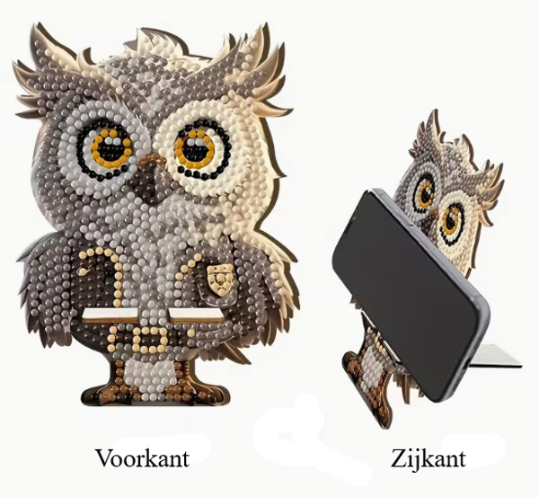 De houder is van hout. De voorkant is met afbeelding, de achterkant is blanco.